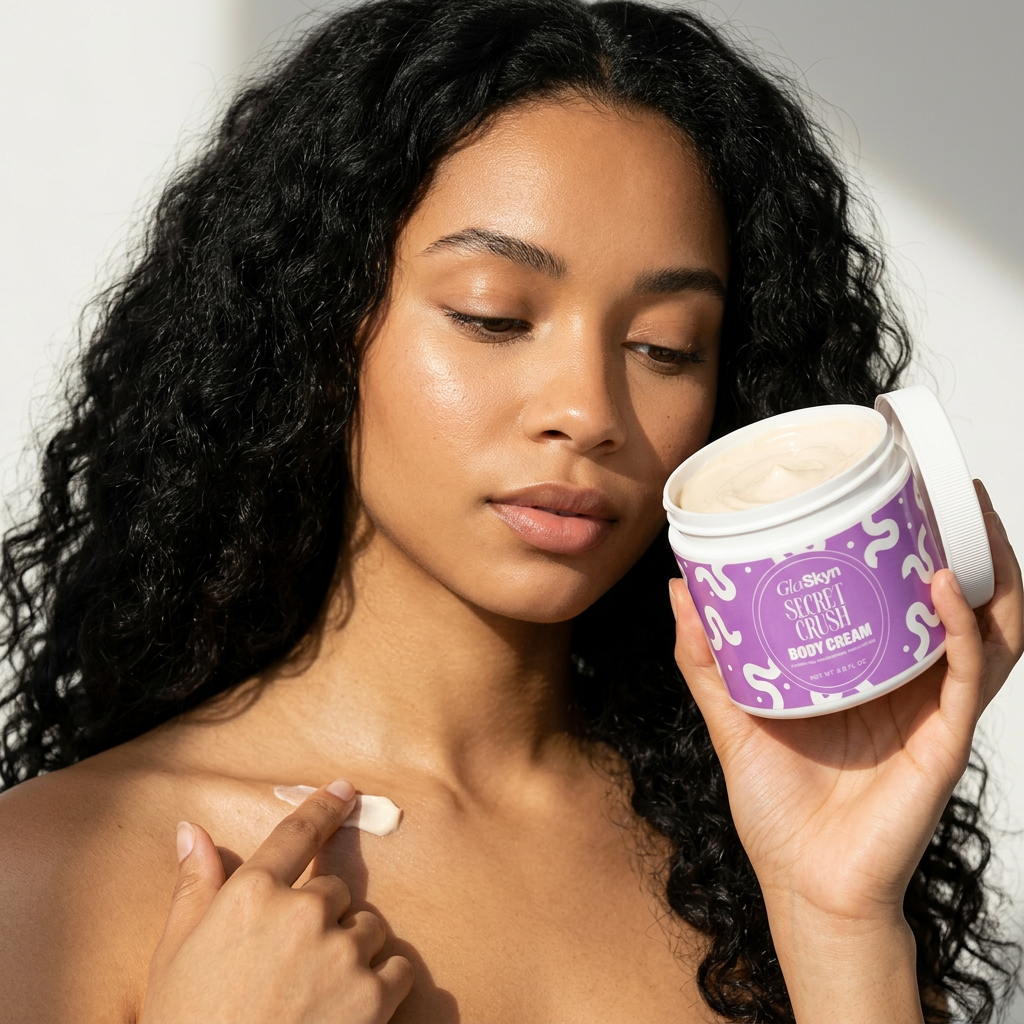 Our Secret Crush Body Cream is a lightweight, silky moisturizer designed for everyday hydration. While we call it a body cream for its luxurious feel, the texture is smooth and lotion-like, absorbing quickly into the skin without heaviness or residue.